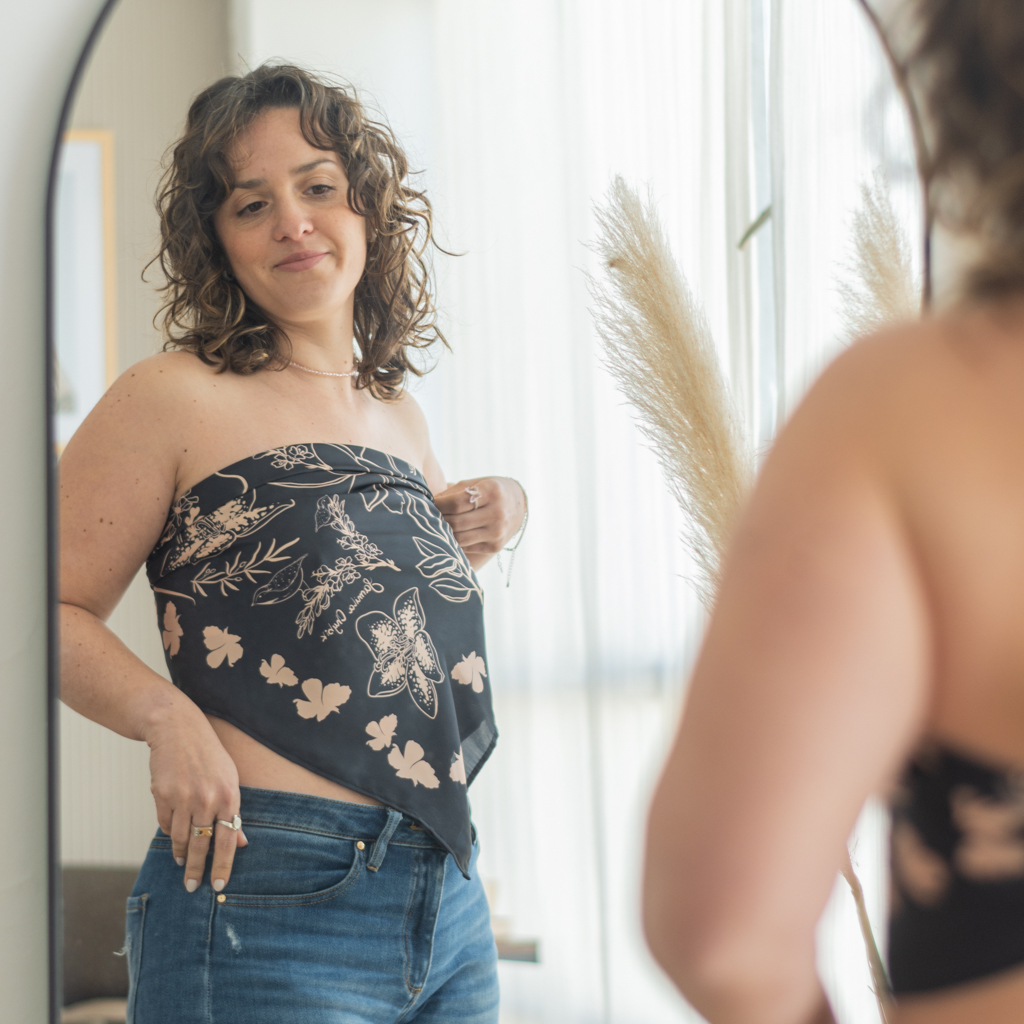 Mis pañuelos estampados son el corazón de mi marca, pero también diseño otros accesorios que te van a acompañar siempre.